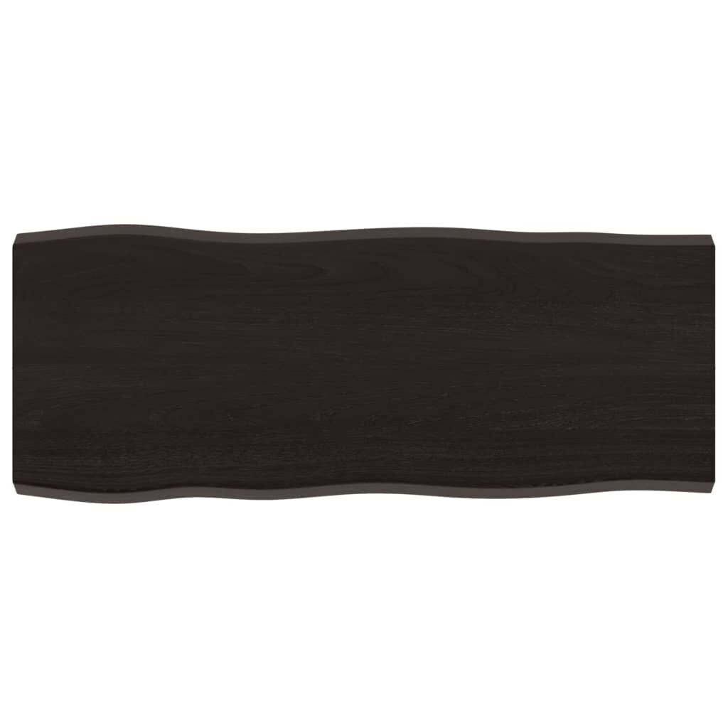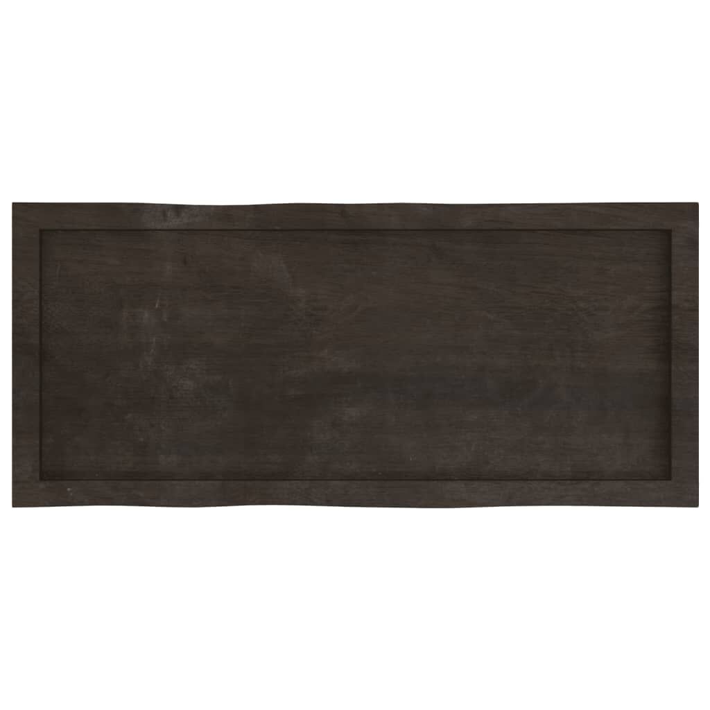 Give a new life to your table with this wooden table top. It is an excellent solution for freshening up your table at home or in a commercial setting. Solid oak wood: The tabletop is made of solid oak wood, which is a beautiful natural material. Oak wood has a medium brown colour and a dense grain, contributing to its unique look.Versatile applications: The replacement table top can be combined with different bases according to your needs.Treated surface: The replacement board has been treated with dark paint, so it is ready for use as an additional finish is not required.Handmade with live edge: The DIY board is meticulously handcrafted, showcasing a live edge that adds to its natural charm. Due to that the knots, cracks, slightly curved shapes, and colour tones are part of the oak wood. Every piece has its own unique character to display. The delivery is random, ensuring the exclusivity and individuality of your product. Good to know:As a natural product, wood may show knots and imperfections that we fill with black fillings to ensure a smooth appearance.