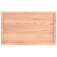 Give a new life to your table with this wooden table top. It is an excellent solution for freshening up your table at home or in a commercial setting. Solid oak wood: The tabletop is made of solid oak wood, which is a beautiful natural material. Oak wood has a medium brown colour and a dense grain, contributing to its unique look.Versatile applications: The replacement table top can be combined with different bases according to your needs.Treated surface: The replacement board has been varnished so it is ready for use as an additional finish is not required.Handmade with live edge: The DIY board is meticulously handcrafted, showcasing a live edge that adds to its natural charm. Every piece of shelf has its own unique character to display. The delivery is random, ensuring the exclusivity and individuality of your product. Good to know:As a natural product, wood may show knots and imperfections that we fill with black fillings to ensure a smooth appearance.