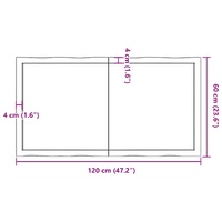 Give a new life to your table with this wooden table top. It is an excellent solution for freshening up your table at home or in a commercial setting. Durable construction: The tabletop is made of solid oak wood, which is a beautiful natural material. Oak wood has a medium brown colour and a dense grain, contributing to its unique look. Due to the hinge design, it can be folded and stored in narrow spaces.Versatile applications: The replacement table top can be combined with different bases according to your needs.Treated surface: The replacement board has been varnished so it is ready for use as an additional finish is not required.Handmade with live edge: The DIY board is meticulously handcrafted, showcasing a live edge that adds to its natural charm. Due to that the knots, cracks, slightly curved shapes, and colour tones are part of the oak wood. Every piece has its own unique character to display. The delivery is random, ensuring the exclusivity and individuality of your product. Good to know:As a natural product, wood may show knots and imperfections that we fill with black fillings to ensure a smooth appearance.