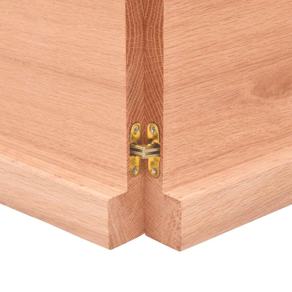 Give a new life to your table with this wooden table top. It is an excellent solution for freshening up your table at home or in a commercial setting. Durable construction: The tabletop is made of solid oak wood, which is a beautiful natural material. Oak wood has a medium brown colour and a dense grain, contributing to its unique look. Due to the hinge design, it can be folded and stored in narrow spaces.Versatile applications: The replacement table top can be combined with different bases according to your needs.Treated surface: The replacement board has been varnished so it is ready for use as an additional finish is not required.Handmade with live edge: The DIY board is meticulously handcrafted, showcasing a live edge that adds to its natural charm. Due to that the knots, cracks, slightly curved shapes, and colour tones are part of the oak wood. Every piece has its own unique character to display. The delivery is random, ensuring the exclusivity and individuality of your product. Good to know:As a natural product, wood may show knots and imperfections that we fill with black fillings to ensure a smooth appearance.