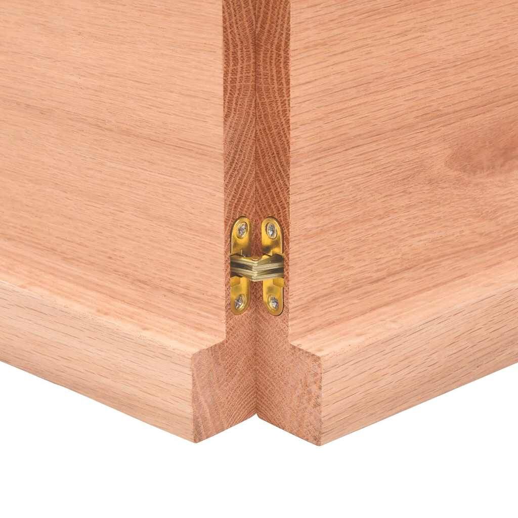 Give a new life to your table with this wooden table top. It is an excellent solution for freshening up your table at home or in a commercial setting. Durable construction: The tabletop is made of solid oak wood, which is a beautiful natural material. Oak wood has a medium brown colour and a dense grain, contributing to its unique look. Due to the hinge design, it can be folded and stored in narrow spaces.Versatile applications: The replacement table top can be combined with different bases according to your needs.Treated surface: The replacement board has been varnished so it is ready for use as an additional finish is not required.Handmade with live edge: The DIY board is meticulously handcrafted, showcasing a live edge that adds to its natural charm. Due to that the knots, cracks, slightly curved shapes, and colour tones are part of the oak wood. Every piece has its own unique character to display. The delivery is random, ensuring the exclusivity and individuality of your product. Good to know:As a natural product, wood may show knots and imperfections that we fill with black fillings to ensure a smooth appearance.