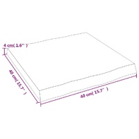 Give a new life to your table with this wooden table top. It is an excellent solution for freshening up your table at home or in a commercial setting. Solid oak wood: The tabletop is made of solid oak wood, which is a beautiful natural material. Oak wood has a medium brown colour and a dense grain, contributing to its unique look.Versatile applications: The replacement table top can be combined with different bases according to your needs.Treated surface: The replacement board has been varnished so it is ready for use as an additional finish is not required.Handmade with live edge: The DIY board is meticulously handcrafted, showcasing a live edge that adds to its natural charm. Due to that the knots, cracks, slightly curved shapes, and colour tones are part of the oak wood. Every piece has its own unique character to display. The delivery is random, ensuring the exclusivity and individuality of your product. Good to know:As a natural product, wood may show knots and imperfections that we fill with black fillings to ensure a smooth appearance.