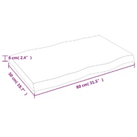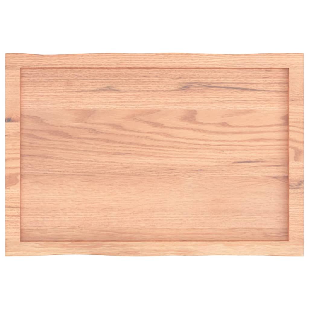Give a new life to your table with this wooden table top. It is an excellent solution for freshening up your table at home or in a commercial setting. Solid oak wood: The tabletop is made of solid oak wood, which is a beautiful natural material. Oak wood has a medium brown colour and a dense grain, contributing to its unique look.Versatile applications: The replacement table top can be combined with different bases according to your needs.Treated surface: The replacement board has been varnished so it is ready for use as an additional finish is not required.Handmade with live edge: The DIY board is meticulously handcrafted, showcasing a live edge that adds to its natural charm. Due to that the knots, cracks, slightly curved shapes, and colour tones are part of the oak wood. Every piece has its own unique character to display. The delivery is random, ensuring the exclusivity and individuality of your product. Good to know:As a natural product, wood may show knots and imperfections that we fill with black fillings to ensure a smooth appearance.