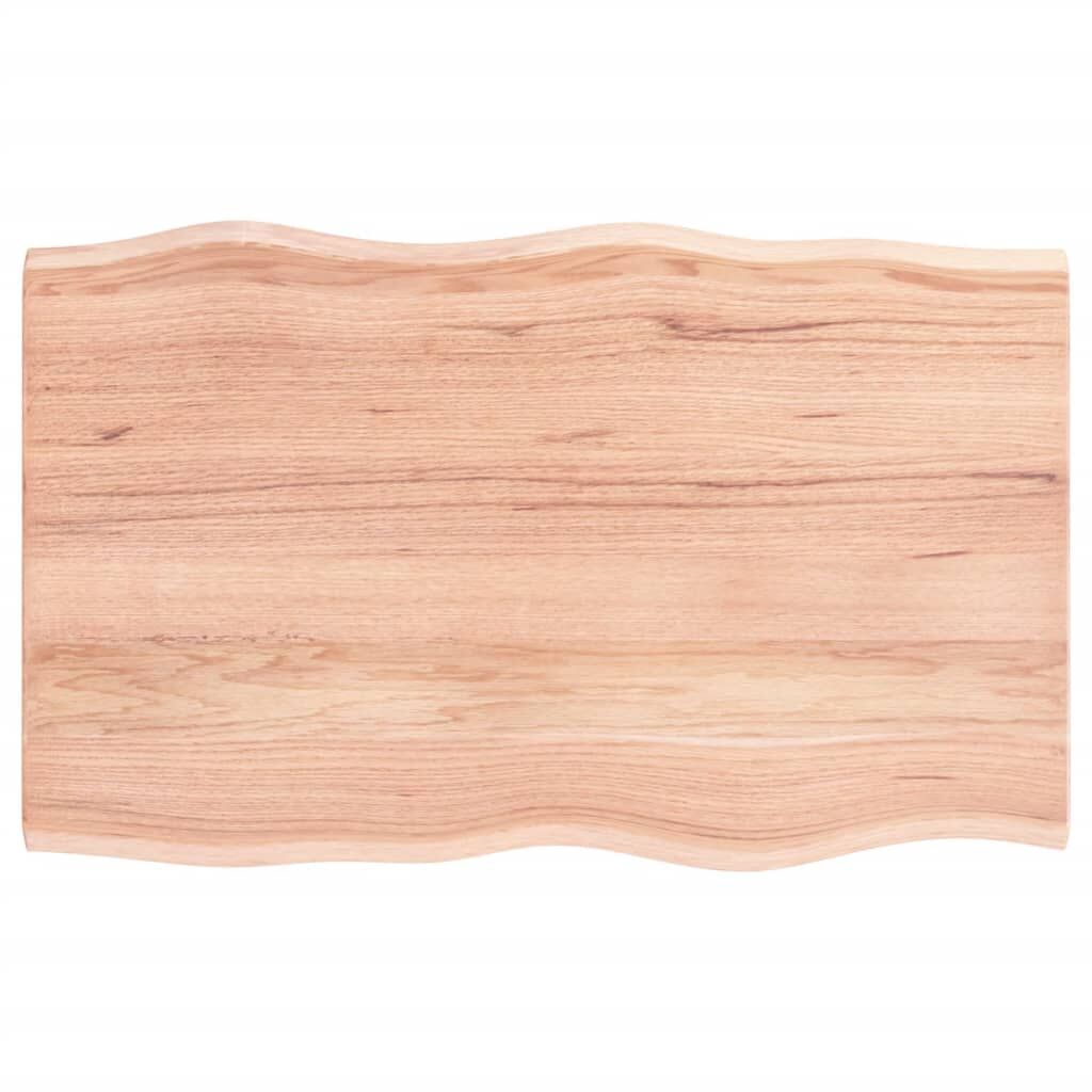 Give a new life to your table with this wooden table top. It is an excellent solution for freshening up your table at home or in a commercial setting. Solid oak wood: The tabletop is made of solid oak wood, which is a beautiful natural material. Oak wood has a medium brown colour and a dense grain, contributing to its unique look.Versatile applications: The replacement table top can be combined with different bases according to your needs.Treated surface: The replacement board has been varnished so it is ready for use as an additional finish is not required.Handmade with live edge: The DIY board is meticulously handcrafted, showcasing a live edge that adds to its natural charm. Due to that the knots, cracks, slightly curved shapes, and colour tones are part of the oak wood. Every piece has its own unique character to display. The delivery is random, ensuring the exclusivity and individuality of your product. Good to know:As a natural product, wood may show knots and imperfections that we fill with black fillings to ensure a smooth appearance.