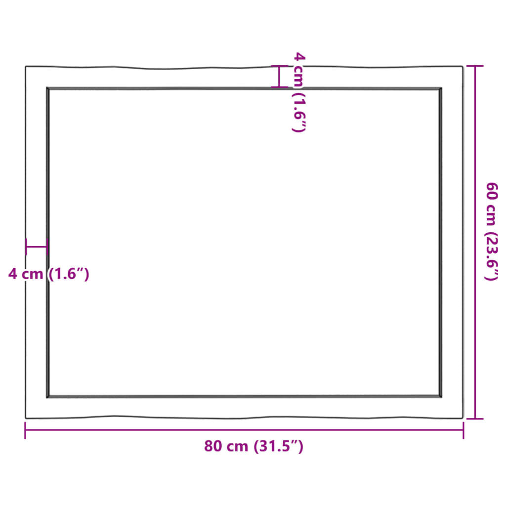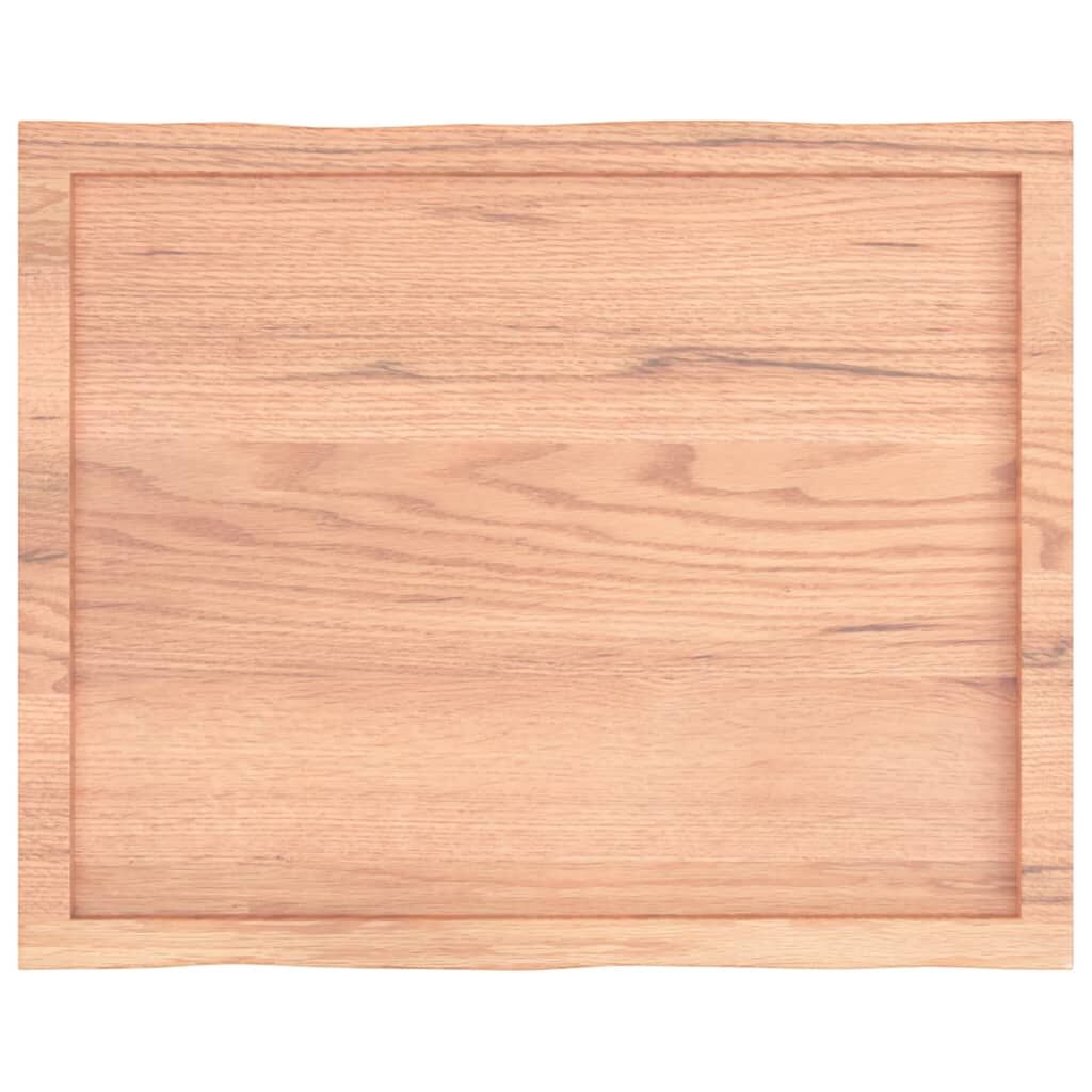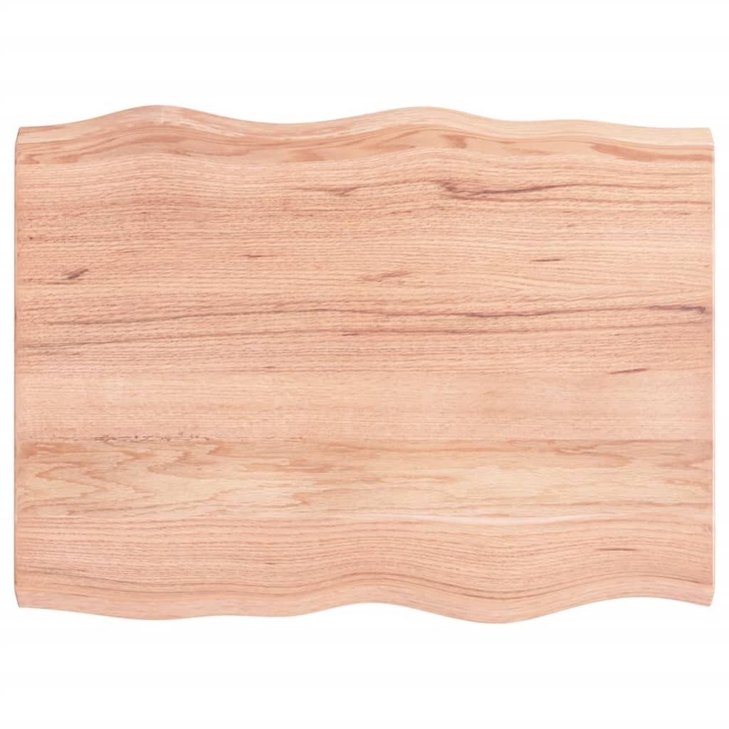 Give a new life to your table with this wooden table top. It is an excellent solution for freshening up your table at home or in a commercial setting. Solid oak wood: The tabletop is made of solid oak wood, which is a beautiful natural material. Oak wood has a medium brown colour and a dense grain, contributing to its unique look.Versatile applications: The replacement table top can be combined with different bases according to your needs.Treated surface: The replacement board has been varnished so it is ready for use as an additional finish is not required.Handmade with live edge: The DIY board is meticulously handcrafted, showcasing a live edge that adds to its natural charm. Due to that the knots, cracks, slightly curved shapes, and colour tones are part of the oak wood. Every piece has its own unique character to display. The delivery is random, ensuring the exclusivity and individuality of your product. Good to know:As a natural product, wood may show knots and imperfections that we fill with black fillings to ensure a smooth appearance.