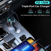 CHOETECH TC0011 130W 3 Ports (Dual USB-C Port PD3.0 + USB-A Port) Fast Car Charger