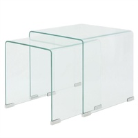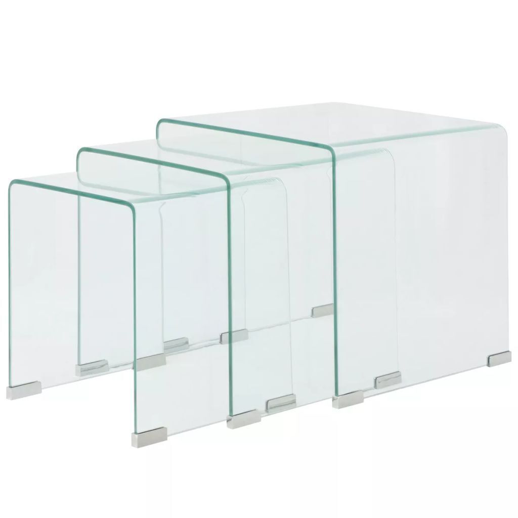 $225.98This 3-piece nesting table set is the perfect alternative for small flats or wherever space is a bit limited. Its contemporary design makes this nesting table set a chic addition to your living room or bedroom. The nesting tables are multifunctional. They can be used in the living room as a convenient surface to rest your drinks or any other necessities you need close at hand. You can also bring one of them into your bedroom for use as a unique nightstand! The nesting tables are made of tempered safety glass. Thanks to the tables' difference in size, this nesting coffee table set can not only meet your multiple needs, but also provides extra space and easy storage when the smaller tables are hidden under the bigger one. Delivery includes three nesting tables.