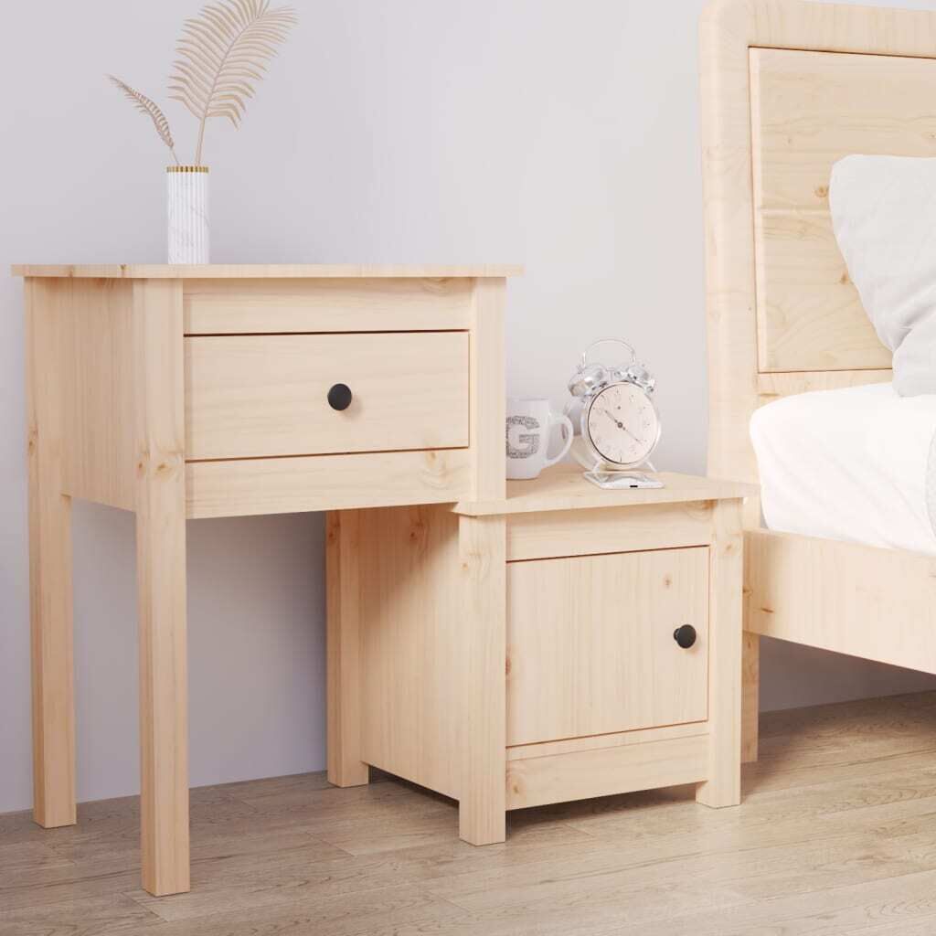 $55.79This trendy wooden bedside cabinet, featuring a sleek and classic design, is meant to upgrade your interior to the next level. Solid pine wood: Solid pine wood is a beautiful natural material. Pine wood has a straight grain, and the knots give the material its signature, rustic look.Ample storage space: The nightstand has 1 drawer and 1 compartment with a door, providing ample space to keep your magazines, books, remote controls and other small items well organised and within reach.Sturdy top: The 2 sturdy tops are ideal for displaying decorative objects, photo frames and potted plants.Flexible installation: The low and high parts can be installed on the left or right flexibly. WARNING:In order to prevent overturning, this product must be used with the wall attachment device provided. Note:Each product comes with an assembly manual in the box for easy assembly.