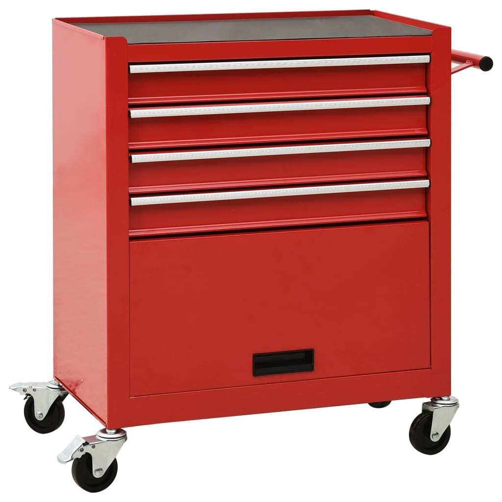 $214.19Get this handy tool trolley with 4 sliding drawers to store and organise your tools. Each drawer has an anti-slip bottom lining to keep your tools in place. Made of steel, this trolley is sturdy and stable. The drawer has an interlocked function, which prevents more than one drawer being opened at once. Hence, you can only open one drawer at a time. Two of the swivel castors have brakes. The robust countertop on the tool cabinet is a great spot to keep frequently-used tools within reach. There is also a convenient side handle for pushing the trolley.