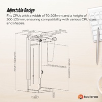 Revolutionise your workspace with the Tooleroo Under Desk CPU Mount, designed to provide convenience, organisation, and durability. With its adjustable design, 360° swivel mechanism, and robust construction, this computer tower stand is the ultimate solution for mounting your CPU securely under your desk.