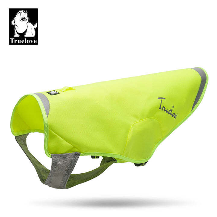 $54.14True Love Track jacket. Keep your Dog comfortable and dry in this waterproof Dupont material. Visible Orange neon and yellow fabric with a reflective print design for excellent visibility. Loops for attaching led safety lights for added visibility. Two Duraflex buckles on both sides make it super easy to put on and stay in place.