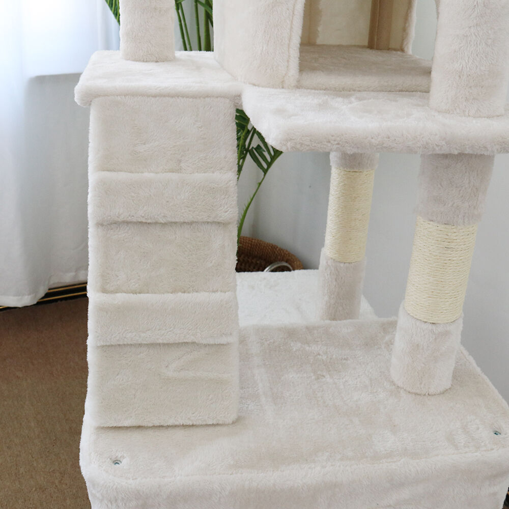 This cat tree offers many comforts for your beloved pet. It has sisal posts to satisfy your cats nature of clawing and protect your furniture from scratching. Raised top perch edge prevents your cat from falling and provides comfortable resting experience and an elegant white-grey colour tones that go well easily with your home's existing décor will help you keep your kitty entertained for hours.