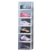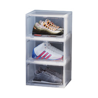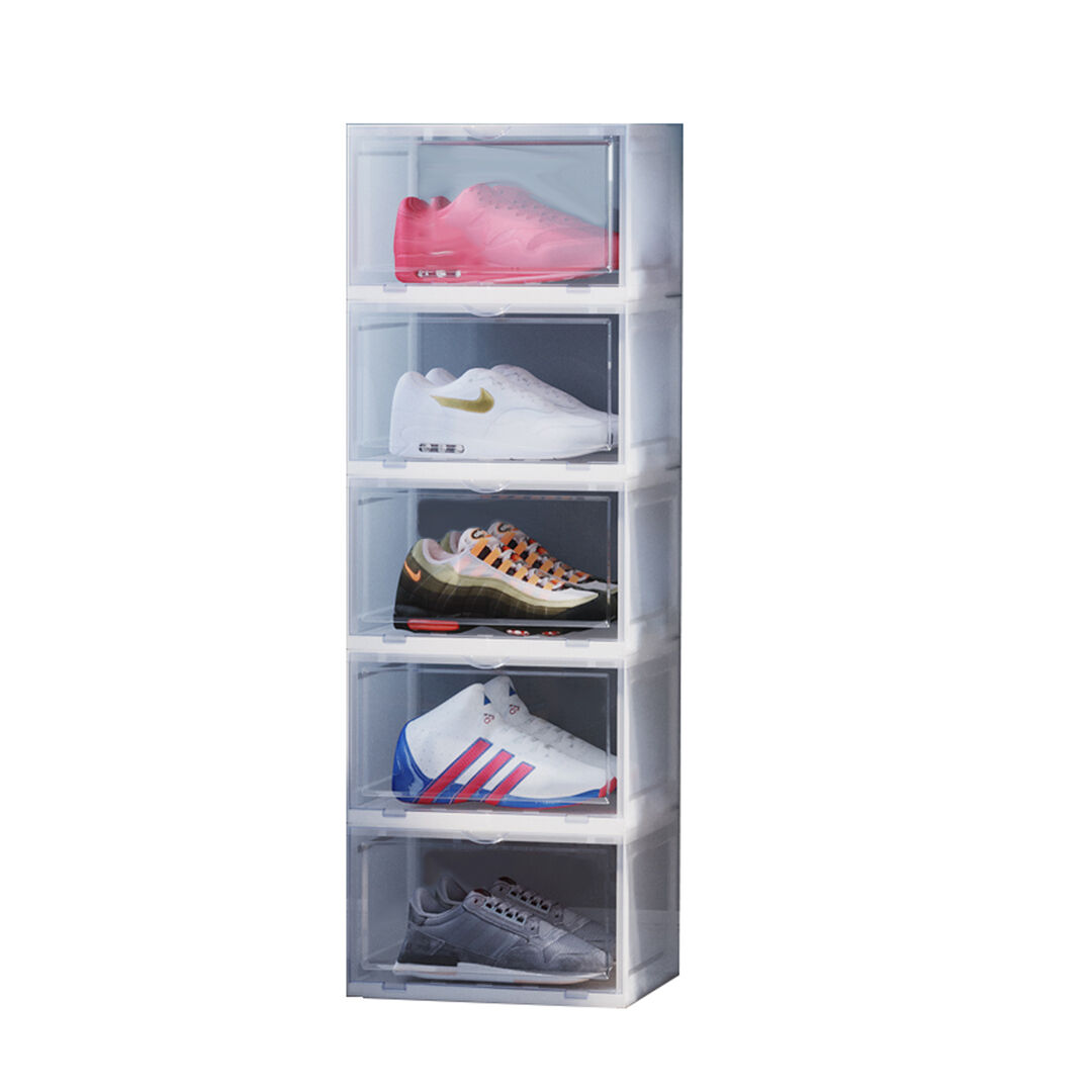 Transparent Portable Shoe Organiser Sneaker Footwear Folding Plastic Bin Stackable Storage Box with Magnetic Door