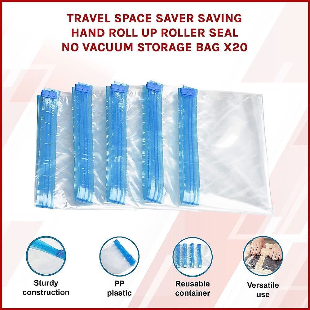 $40.84Easy to useeven without a vacuum cleanerthese space-saving travel roll-up vacuum bags from Randy Travis Machinery will help you pack more into less space when you travel or move. This 20-piece pack features a double zip-lock closure, eliminating the need for a vacuum cleaner. Reuse them over and overthey're designed for durability.