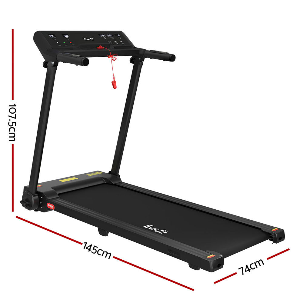 $475.19For a truly effective approach to weight loss and toning, our Everfit Fitness Treadmill is your perfect companion. Compact and sturdy with its powder-coated steel frame, the treadmill allows you to perform essential cardio exercises within the comfort of your home. The treadmill features 12 pre-set training programs designed to simulate natural terrain. A user-centric control panel with a digital LCD display lets you set up speeds of between 1km/h and 14km/h and monitor other parameters. Its powerful and energy-efficient motor produces smooth and seamless operation and the anti-slip belt and soft-grip handlebar make your session a comfortable and controlled experience. When all the hard work is done, fold and store away the compact treadmill away easily. Other great features include safety tether key, smooth wheels for easy mobility and tablet holder. For health results that matter, our fitness treadmill is the one to run to.