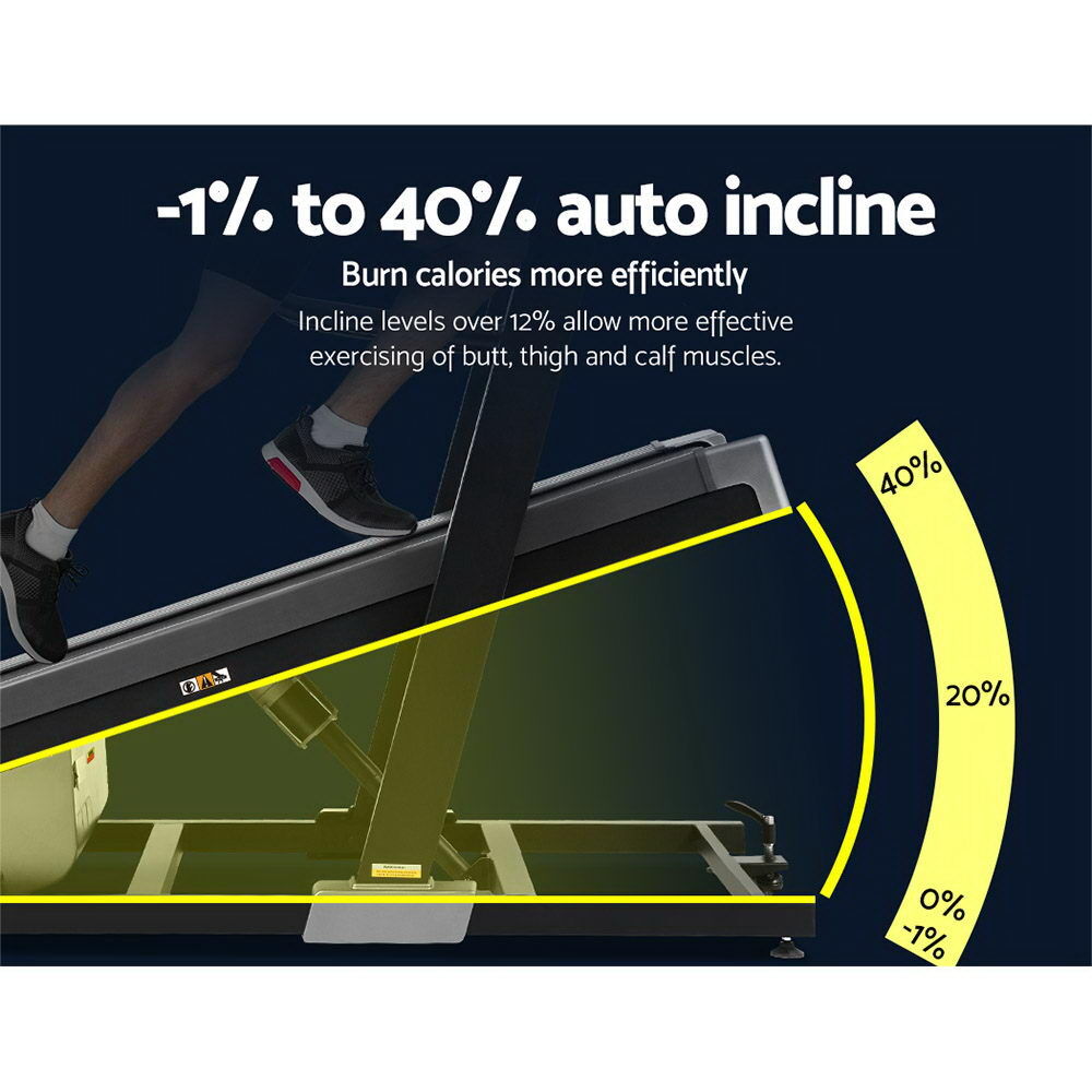 $1,652.39Want a more varied workout? Something that is easy on your joints yet efficient? Well, our Everfit Electric Incline Trainer Treadmill certainly fits the bill. Sturdy with its powder-coated steel frame, the incline trainer allows you to perform essential cardio exercises within the comfort of your home. It has all the features of traditional treadmills, but what sets it apart is the higher incline levels. With auto incline between -1% and 40%, you can simulate climbing and hiking outdoors to maximise your exercise efficiency. Walking at a high incline at lower speeds burns just as many calories as jogging or running on a level surface, yet is much easier on your joints with lower impact.