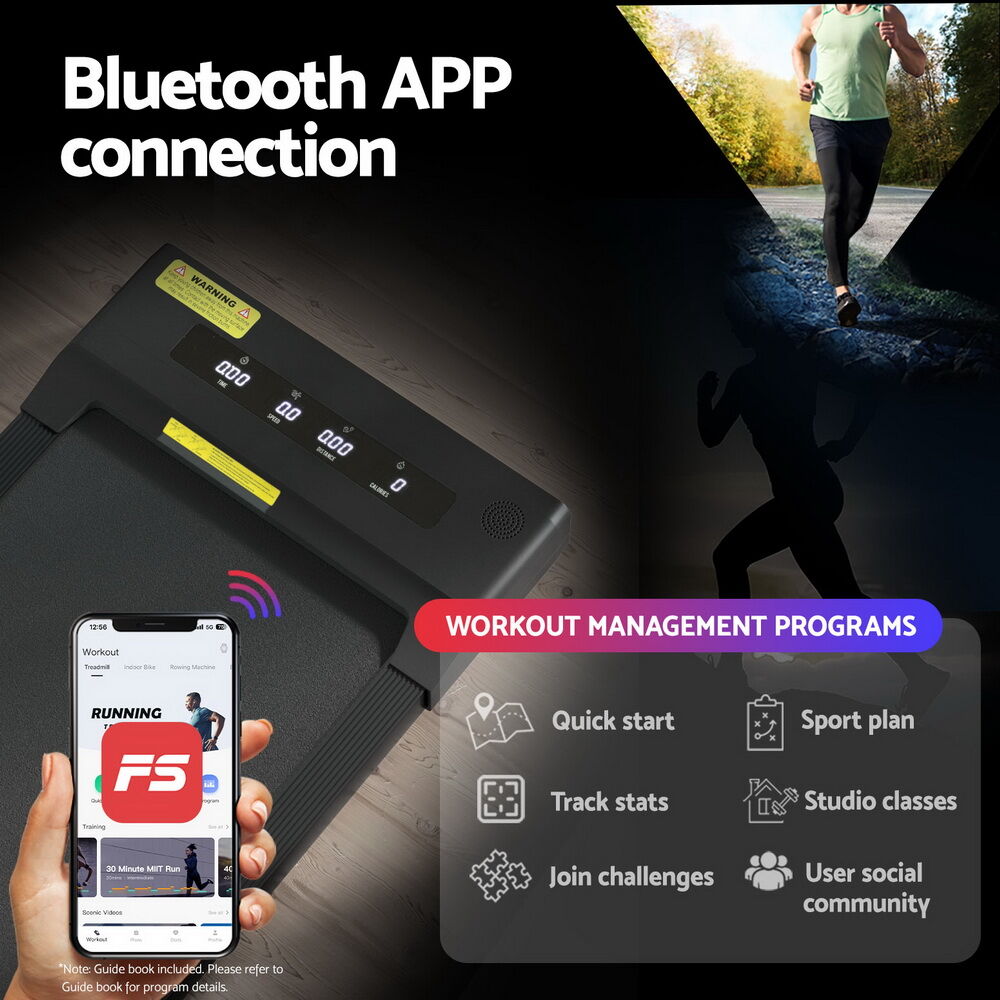 $268.19For a truly effective approach to weight loss and toning, our Everfit Walking Pad is your perfect companion. Compact and sturdy, the walking pad allows you to perform essential cardio exercises within the comfort of your home. It is foldable, easy to move, and comes ready to hit the ground running no assembly required. Controlled by either the companion app or remote control, set up speeds of between 1km/h and 10km/h and monitor speed, time, distance and calories. Its powerful and energy-efficient motor produces smooth and seamless operation and the anti-slip belt phone holder makes your session a comfortable and controlled experience. The 400mm non-slip running belt uses an enhanced shock control system to help reduce the risk of joint injury, making the walking pad suitable for adults and seniors. When all the hard work is done, easily fold the compact walking pad and store away. Other great features include smooth wheels for easy mobility and Bluetooth speakers for entertainment while exercising. For health results that matter, our fitness walking pad is the one to run to.