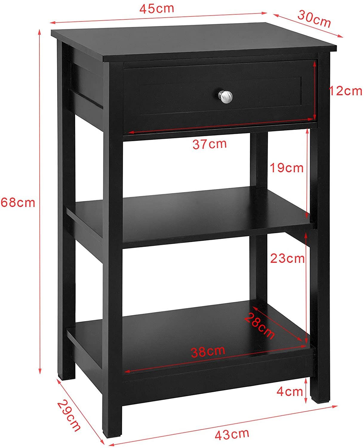 Bedside Table with one drawer and two shelves is a good addition to your bedroom and living room.