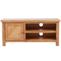 $299.69This high-quality wooden TV cabinet has a rustic look and feel that will suit any bedroom or living room. This TV cabinet is expertly crafted from durable solid oak and highly functional. It features a cupboard with a two shelves for knick-knacks and a further two shelves for media players or gaming consoles and surround sound systems. Two convenient cable outlets allow you to neatly keep all wires out of sight.