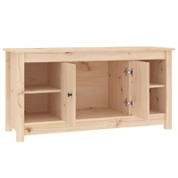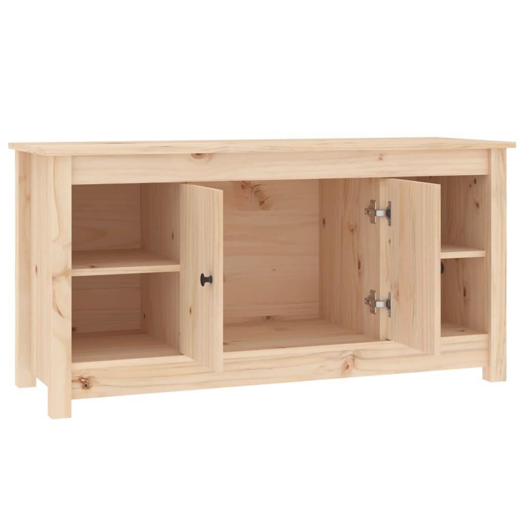 $113.41This trendy wooden TV cabinet, featuring a sleek and stylish design, is meant to be a decorative as well as practical addition to your room decor. Solid pine wood: Solid pine wood is a beautiful natural material. Pine wood has a straight grain, and the knots give the material its signature, rustic look.Stable frame: The wooden frame ensures sturdiness and stability.Ample storage space: The TV unit has 1 big compartment with 2 doors and 4 small open compartments, offering sufficient storage space to keep your essentials well organised and within reach.Displaying function: The sturdy top is a perfect spot for displaying potted plants, framed photos and other decorative items. WARNING:In order to prevent overturning, this product must be used with the wall attachment device provided. Note:Each product comes with an assembly manual in the box for easy assembly.