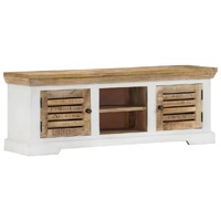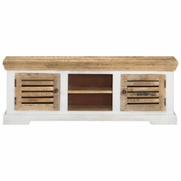 $210.13This wooden TV cabinet exudes a rustic charm. It will make a real attention-grabbing addition to your interior. The sideboard is made of solid mango wood, a hardwood with dense grains. Mango wood not only has the strength to bear the weight, but also stands the wear and tear of time. As a consequence, this beautifully-designed lowboard is exceedingly stable, durable and aesthetically-appealing. Additionally, this stereo cabinet is fully handmade and the exquisite wood grains enable every piece of furniture distinctive and slightly different from each other. This HiFi cabinet features 2 cabinets with doors and 2 compartments, providing commodious space for storing your multimedia appliances, books, shoes, as well as various other items. Important note: The wood grains vary from piece to piece, making each piece unique. The delivery is random, ensuring the exclusivity and individuality of your product.
