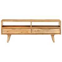 $226.87This wooden retro TV cabinet is a practical as well as an eye-catching addition to your interior. Sturdy material: Solid mango wood is a strong, tropical hardwood that makes sturdy furniture. Its beautiful wood grains make every piece of furniture slightly different from the next.Ample storage space: The TV unit features compartments to keep DVD players, game consoles, streaming devices and media carriers within reach and neatly organised.Sturdy top: The top of the media cabinet serves as an ideal place to put items such as books and ornaments. Good to know:Colours and grains vary per furniture item, making each piece unique. The delivery is random, ensuring the exclusivity and individuality of your product.