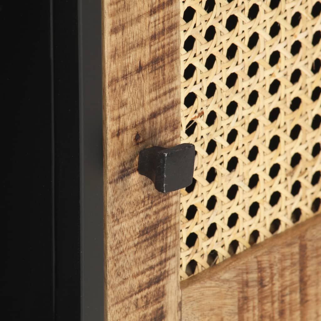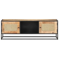 $246.44If you're looking for a simple touch of rustic charm to add to your interior decor, this solid mango wood TV cabinet is here! Solid mango wood is a tropical hardwood. It on the one hand has the strength to bear the weight, and on the other hand stands the wear and tear of time. Additionally, the exquisite craftsmanship and beautiful wood grains make every piece of HiFi cabinets slightly different from the next. The stereo cabinet is equipped with ample storage room, so you can display or keep any items you'd like well organised. The iron frame contributes to its sturdiness and stability. What's more, the TV unit features a hand-woven cane pattern on the door, adding to its rustic charming. Important note: The colours vary from piece to piece, making each wooden TV stand unique.