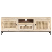 $210.17If you're looking for a simple touch of rustic charm to add to your interior decor, this solid mango wood TV cabinet is here! Solid mango wood is a tropical hardwood. It on the one hand has the strength to bear the weight, and on the other hand stands the wear and tear of time. Additionally, the exquisite craftsmanship and beautiful wood grains make every piece of HiFi cabinets slightly different from the next. The stereo cabinet is equipped with ample storage room, so you can display or keep any items you'd like well organised. The steel base contributes to its sturdiness and stability. What's more, the TV unit features hand-woven cane patterns on the doors and drawer, adding to its rustic charming. Important note: The colours vary from piece to piece, making each wooden TV stand unique.