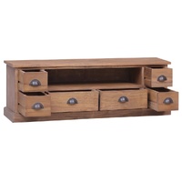 $189.71Featuring a trendy yet practical design, this colonial-style wooden TV cabinet is meant to be a focal point of your room. This rustic TV cabinet, made of solid teak wood with recycled finish, makes a timeless addition to your home. Solid teak wood is known for its exceptional strength, which is exceedingly durable and sturdy. Every step of the process is carried out with the greatest care, be it polishing, painting or lacquering. It has 4 small drawers for storing knick-knacks, 2 big drawers and 1 open compartment for keeping multimedia appliances, gaming consoles and magazines. Additionally, the drawer is designed with brass handle with antique coating for easy opening and closing. Important note: Colours vary from piece to piece, making each of our TV cabinets unique. The delivery is random, ensuring the exclusivity and individuality of your product.