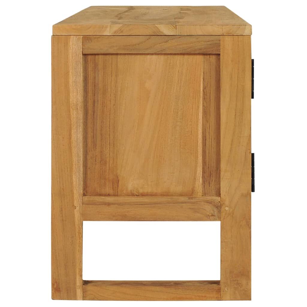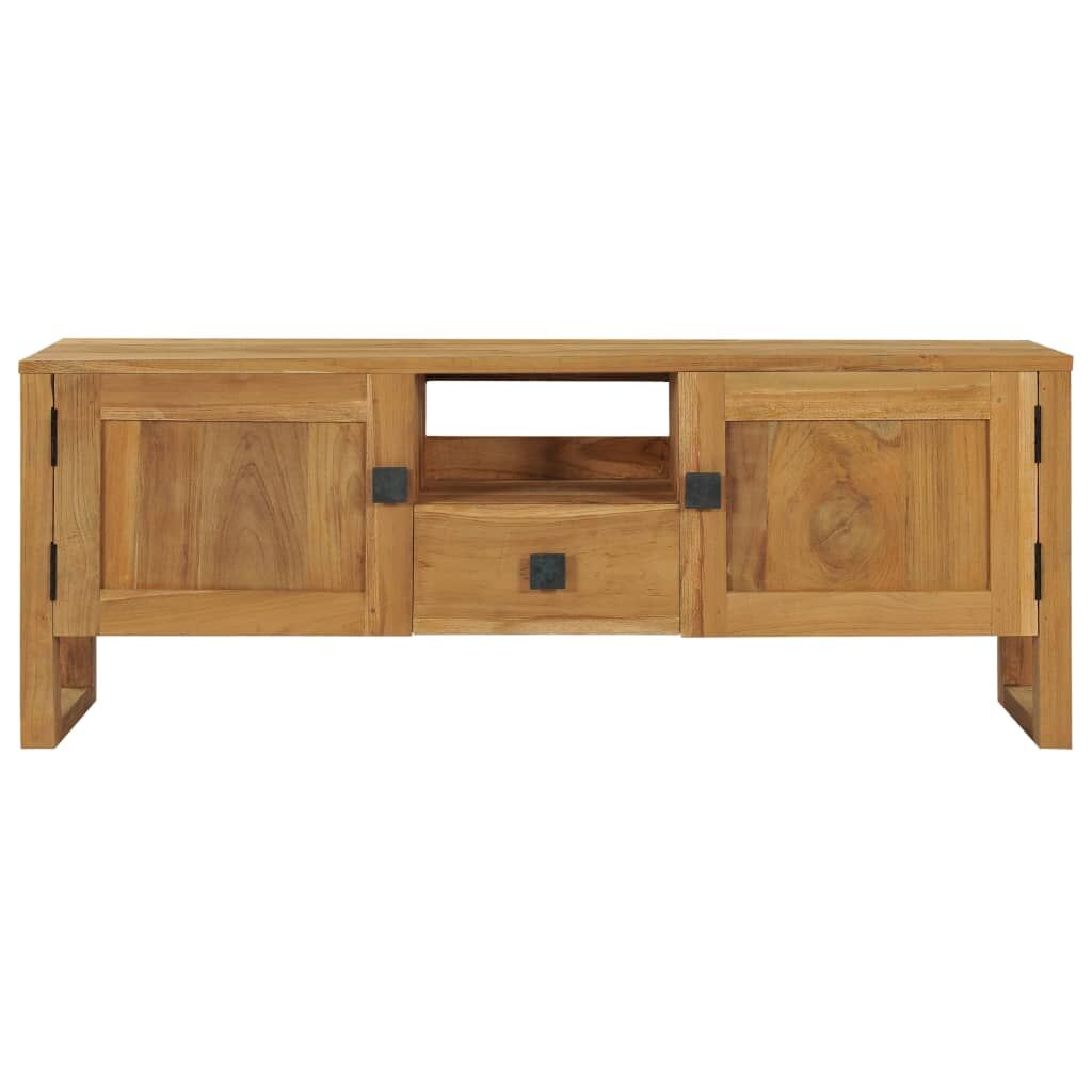 $195.29This colonial-style TV cabinet, made of solid teak wood, adds a touch of rustic charm to your existing interior. It can also be used as a side cabinet or lowboard. This TV stand, features natural colour, has a sturdy hardwood top, on which you can place your TV, router, multimedia appliances or display decorative items like photo frames, fruit baskets or vases. Equipped with 2 doors, 1 drawer and 1 shelf, this wooden hifi cabinet provides ample space to keep all kinds of smaller items organised and within reach. Additionally, the TV unit is durable and easy to clean. Important note: The colours and grains may vary from piece to piece, making each cabinet unique. The delivery is random, ensuring the exclusivity and individuality of your product.