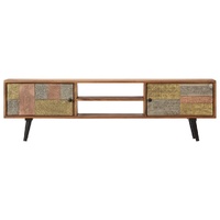 $271.55This wooden TV cabinet exudes a vintage charm and will be the centre of attraction in your home interior. This delightful sideboard is made of solid acacia wood with a subtle honey finish, which adds a beautiful look and warm colour to it. The beautiful, decorative metal details in different colour tones as well as the antique-style handles endow this hifi cabinet with a touch of luxurious charm. High quality craftsmanship and beautiful wood grains make every piece of furniture unique and slightly different from the next. This lowboard features 2 cabinets with doors and 2 compartments, providing ample storage space for your multimedia appliances, books, and various other items. Important note: The colours and wood grain may vary from piece to piece, making each piece unique. The delivery is random, ensuring the exclusivity and individuality of your product.