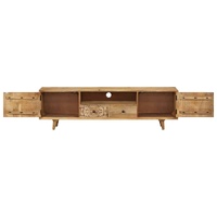 $305.03This wooden TV cabinet will make an eye-catching addition to your interior. The HiFi cabinet is made of solid mango wood, which is a hardwood with dense grains. Rough mango wood not only has the strength to bear the weight, but also stands the wear and tear of time. Therefore this beautifully-designed cabinet is stable, durable and eye-catching. This stereo cabinet is fully handmade and the aesthetically-appealing wood grains make every piece of furniture distinctive and slightly different from each other. This lowboard features 2 drawers, 1 compartment and 2 cabinets with doors, providing ample space for storing your multimedia appliances, books, as well as various other items. Important note: The colours vary from piece to piece, making each piece unique. The delivery is random, ensuring the exclusivity and individuality of your product.