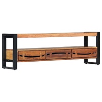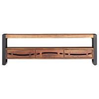 NOW $317.12Equal parts sophisticated and elegant, this wooden TV cabinet gives a nod to a vintage charm and industrial style with its solid acacia wood with a honey finish and steel frame. The exquisite craftsmanship and the beautiful acacia wood grains make every piece of furniture unique and slightly different from the next. Additionally, the HiFi cabinet has 3 drawers for storing knick-knacks and 1 compartment for keeping multimedia appliances, gaming consoles, magazines, as well as various other items. Important note: Colours vary from piece to piece, making each of our plasma TV cabinet unique. The delivery is random, ensuring the exclusivity and individuality of your product.