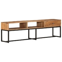 $170.14Featuring a trendy yet practical design, this solid wooden TV cabinet will definitely become a focal point of your room. Premium solid wood: This vintage-style hifi cabinet is made of solid acacia wood. Acacia wood is a beautiful natural material. Treat the surface with oil, wax, lacquer, or a glazing finish for a stronger surface and easy cleaning. Acacia wood is a tropical hardwood, which is dense, sturdy, and durable.Strong frame: Thanks to the strong steel frame, the TV stand is exceedingly sturdy and durable. Practical design:The stereo cabinet has a drawer for storing knick-knacks and open compartments for keeping multimedia appliances, gaming consoles and magazines. Note:Colours vary from piece to piece, making each of our TV cabinets unique. The delivery is random, ensuring the exclusivity and individuality of your product.