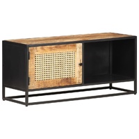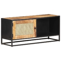 $189.71If you're looking for a simple touch of rustic charm to add to your interior decor, this solid mango wood TV cabinet is here! Solid mango wood is a tropical hardwood. It on the one hand has the strength to bear the weight, and on the other hand stands the wear and tear of time. Additionally, the exquisite craftsmanship and beautiful wood grains make every piece of HiFi cabinets slightly different from the next. The stereo cabinet is equipped with ample storage room, so you can display or keep any items you'd like well organised. The iron frame contributes to its sturdiness and stability. What's more, the TV unit features a hand-woven cane pattern on the door, adding to its rustic charming. Important note: The colours vary from piece to piece, making each wooden TV stand unique.
