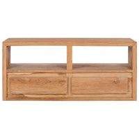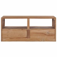 $218.54Featuring a trendy yet practical design, this solid wooden TV cabinet will definitely become a focal point of your room. This vintage-style TV cabinet, made of solid teak wood, will make a timeless addition to your home. Every step of the process is carried out with the greatest care, be it polishing, painting or lacquering. Thanks to the strong frame, the TV stand is exceedingly sturdy and durable. It has 2 drawers for storing knick-knacks and 2 open compartments for keeping multimedia appliances, gaming consoles and magazines. Important note: Colours vary from piece to piece, making each of our TV cabinets unique. The delivery is random, ensuring the exclusivity and individuality of your product.
