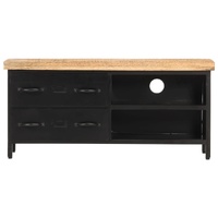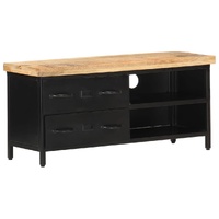 $182.27This wooden TV cabinet adds an industrial style to your bedroom and living room! The stereo cabinet is made of solid rough mango wood, a tropical hardwood with the strength to bear the weight. It also stands the wear and tear of time, making it stable and durable. The black powder-coated iron base combined with steel provides extra stability for the low board. The craftsmanship and the beautiful wood grains make every piece of furniture unique and slightly different from the next. This media unit also features 2 drawers and 2 compartments, providing ample storage space for keeping your essential items organised and within reach. Important note: Colours and grains vary from piece to piece, making each piece unique. The delivery is random, ensuring the exclusivity and individuality of your product.