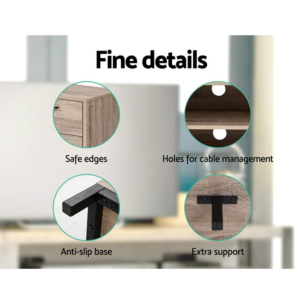 $120.89Your treasured home entertainment system deserves the best cabinet for it. And that is why our Artiss Tania Entertainment Unit is the ideal choice for you. Incorporating a contemporary industrial-look design and presented with 15mm thick particle board with durable powder-coated steel that provides an eclectic touch, our entertainment unit displays great craftsmanship with equally fine hardware to ensure trouble-free use every time. There is even an extra supporting leg attached to the base for a steady and firm stand at all times. And it offers ample storage space with two open shelves and one deep cabinet with a magnetic door catch and two spacious drawers with anti-rust runners for all your entertainment essentials. Better still, the ensemble features black metal handles for a sleek yet industrial appearance and a pre-drilled hole to keep all your cables tidy.
