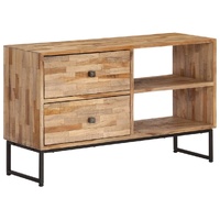 $106.01This reclaimed TV cabinet is a timeless accessory for your home. It can also be used as a side cabinet, sideboard, lowboard. This rustic wooden sideboard is handmade of reclaimed teak, which is very sturdy and durable and has natural characteristics. Every step of the process is carried out with the greatest care, be it polishing, painting or lacquering. The craftsmanship and beautiful wood grains make every piece of furniture unique and slightly different from the next. The lowboard features ample storage space to keep your important items well organised and within reach. The sturdy powder-coated steel frame adds to its retro and industrial style. This item is easy to assemble. Important note: Colours and grains may vary from piece to piece, making each of our TV cabinets unique. The delivery is random, ensuring the exclusivity and individuality of your product.