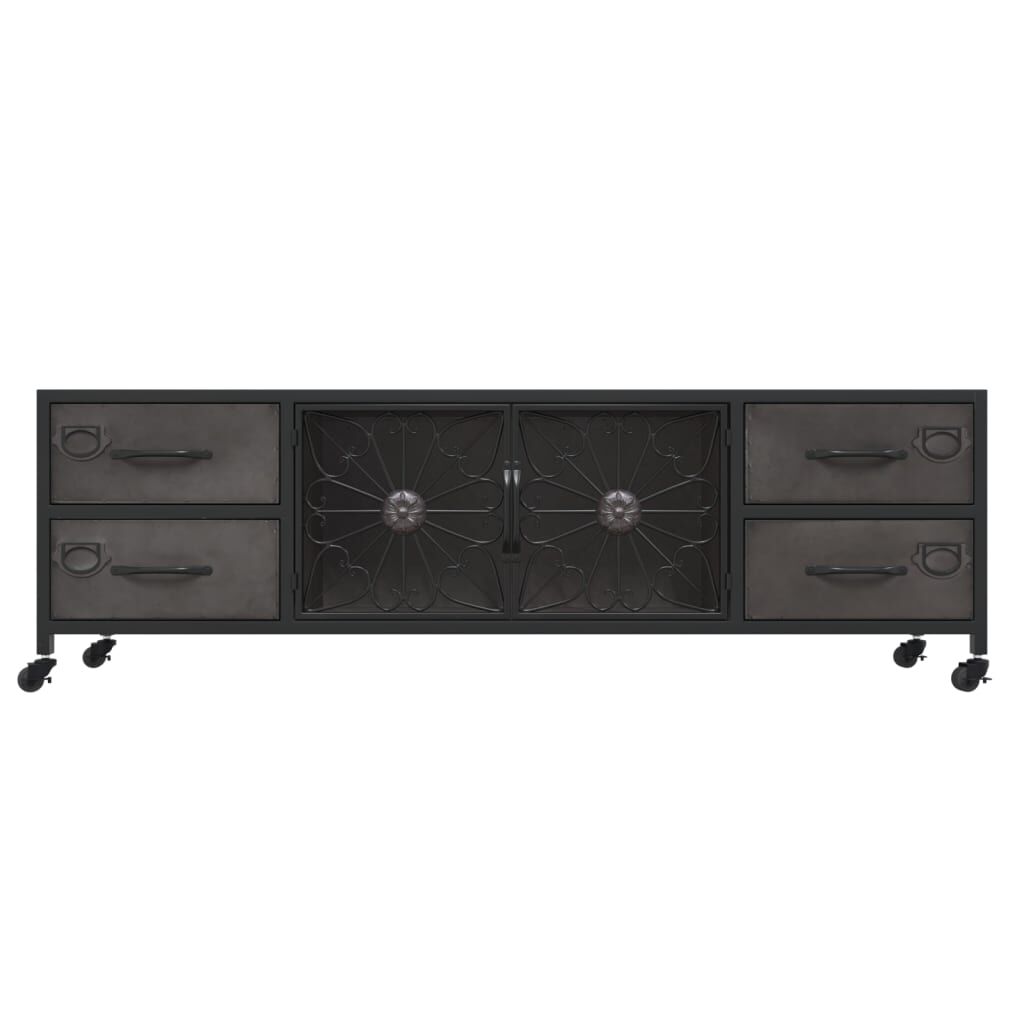 $208.27This TV cabinet is definitely meant to be a focal point of your living room or bedroom. Premium material: The TV unit is made of iron, which makes it highly stable and durable.Ample storage space: The TV stand features 4 drawers and 1 compartment with 2 doors for keeping DVD players, game consoles, streaming devices, and media carriers neatly organised.Sturdy top: The media cabinet has a sturdy top, making it ideal for displaying decorative objects, photo frames, potted plants, etc.Convenient design: The TV stand is equipped with 4 wheels and can be flexibly placed and easily moved around.