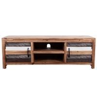 $192.50This wooden TV cabinet will make a great addition to your bedroom or living room decor. The HiFi cabinet is crafted from solid acacia wood, which makes it very sturdy and durable. The door fronts have been painted in contrasting black and white, which gives the stand a unique look. The sturdy top is ideal for placing your TV and HiFi system or other decorative items like vases or fruit baskets. This lowboard provides ample space for keeping your DVD player, game console, streaming device, media carriers, etc. neatly organised. Assembly is easy. Important note: The colours and wood grains may vary from piece to piece, making each item unique and slightly different from the next. The delivery is random, ensuring the exclusivity and individuality of your product.
