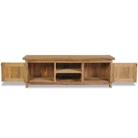$257.60This colonial-style TV cabinet, made of solid teak, will add a touch of rustic charm to your interior. It can also be used as a side cabinet, HiFi cabinet, or lowboard. The TV stand has a sturdy hardwood top, on which you can place your TV, router, multimedia appliances or display decorative items like photo frames, fruit baskets or vases. The 2 cupboards and 2 compartments provide ample space for keeping all kinds of smaller items organised and within reach.