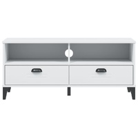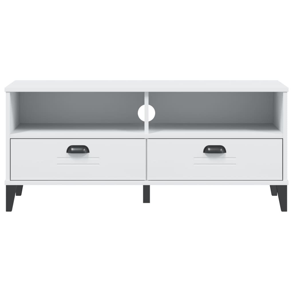 This TV cabinet is designed to be a focal point of your room with an industrial yet practical design. Durable material: The engineered wood is of exceptional quality with smooth surface and also features strength, stability and resistance to moisture.Spacious storage: The TV sideboard has ample storage space which makes it an ideal place for storing all your magazines, DVDs, and other items. The cable hole at the back of the cabinet allows you to organise the mess wires easily.Displaying function: The sturdy top of the media cabinet is ideal for displaying decorative items like photo frames and plants.Practical handle: The TV cupboard comes with handles that make it easy to open and close the cabinet while adding extra beauty. Warning:To prevent it from tipping over, this product must be used with the provided wall attachment device.