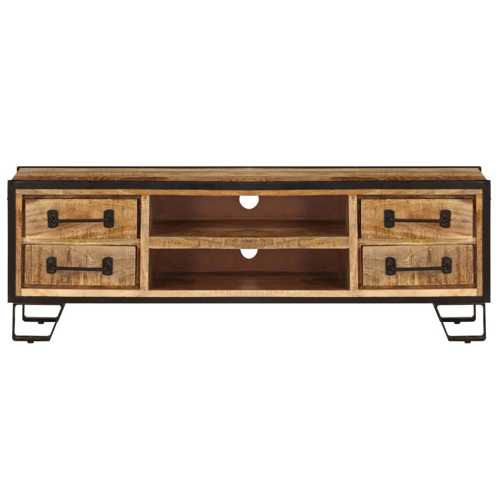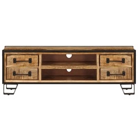 $178.55This wooden TV stand with an industrial style will become the focal point of your living room or entertainment area. It can also be used as a sideboard, lowboard, etc. The TV cabinet is made of solid mango wood which is stable, durable and beautiful, and the craftsmanship adds to its spectacular retro style. Every step of the process is carried out with the greatest care, be it polishing, painting or lacquering. The craftsmanship and the beautiful wood grains make every piece of furniture unique and slightly different from the next. The steel legs add its extra stability. The 2 compartments and 4 drawers provide ample space for you to keep DVD players, game consoles, streaming devices and media carriers neatly organised. Important note: The colours vary from piece to piece, making each of our TV cabinets unique. The delivery is random, ensuring the exclusivity and individuality of your product.