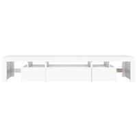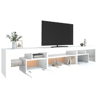 $253.64Featuring a trendy yet practical design, this TV cabinet with LED lights definitely becomes a focal point of your room. Practical material: The engineered wood is of exceptional quality with smooth surface and also features strength, stability and resistance to moisture. Colourful LED lights: The TV stand features RGB LED lights, which has different menus to change the colour of lights and let the colour adjust automatically differently. The LED lights underline the modern look and contribute to the trendy feeling.Ample storage space: The TV unit provides plenty of storage space for keeping your magazines, books, remote controls and other small items well-organised and within easy reach.Displaying function: The sturdy top of media cabinet is ideal for displaying decorative objects, photo frames, or potted plants. Note:The product has a USB connector, but the certified 5V USB power source is not included.Each product comes with an assembly manual in the box for easy assembly.