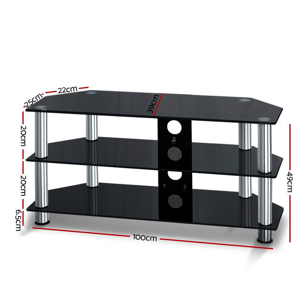 $131.12Give your entertainment zone an integrated look with our Artiss TV and Media Stand. With a smooth design that incorporates your TV screen with other multi-media equipment into one ensemble, the stand is simply exceptional in every way. The black powder-coated stand can easily hold any TV screen as well as other AV equipment such as DVD player, TV box or home theatre system. The stand also has a 3-tier tempered glass shelf that is strong and capable of carrying equipment up to 20kg for the bottom three tiers and up to 40kg for the top tier. Not least, the supports are made of 50mm diameter metal tubes for enhanced support at all times.