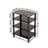 The stand comprises of 4 tiers of tempered glass shelves that provide sturdiness and durability. Additionally, the integrated ensemble is cosntructed from aluminium and finished in sleek black. Each shelf is ventilated to enable good airflow for any media equipment.