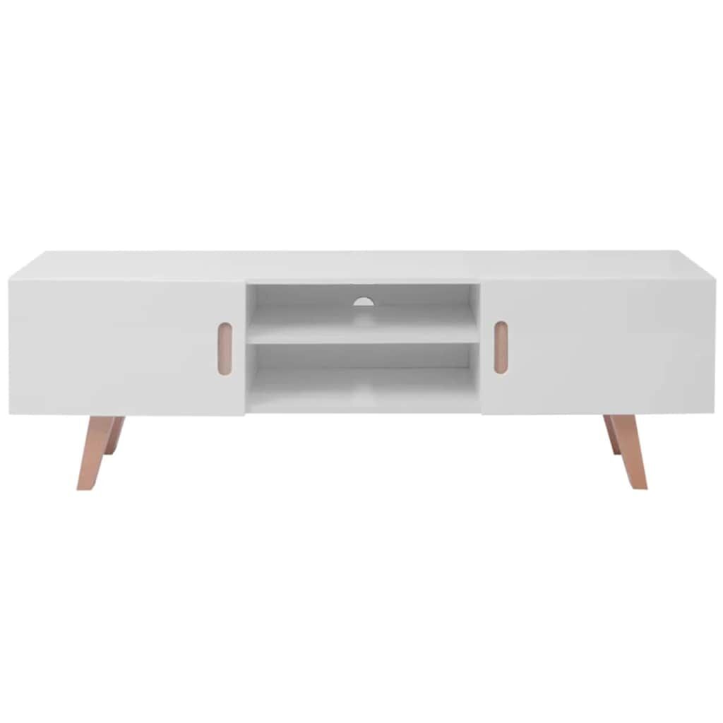 $199.01This high gloss TV stand will become the focal point of your living room or entertainment area. It has plenty of storage space and the roomy design works really well. Its sturdy construction makes the stand highly durable. The high gloss finish gives the piece an elegant look and feel that will suit any decor. The large cabinets and shelves with ample surface space allow you to keep your DVD player, game console, streaming device and media carriers neatly organised. What's more, you can keep the cables out of sight easily thanks to the 2 cable outlets. With our high gloss entertainment stand for large TVs you can create a sleek, modern entertainment centre for all of your media!