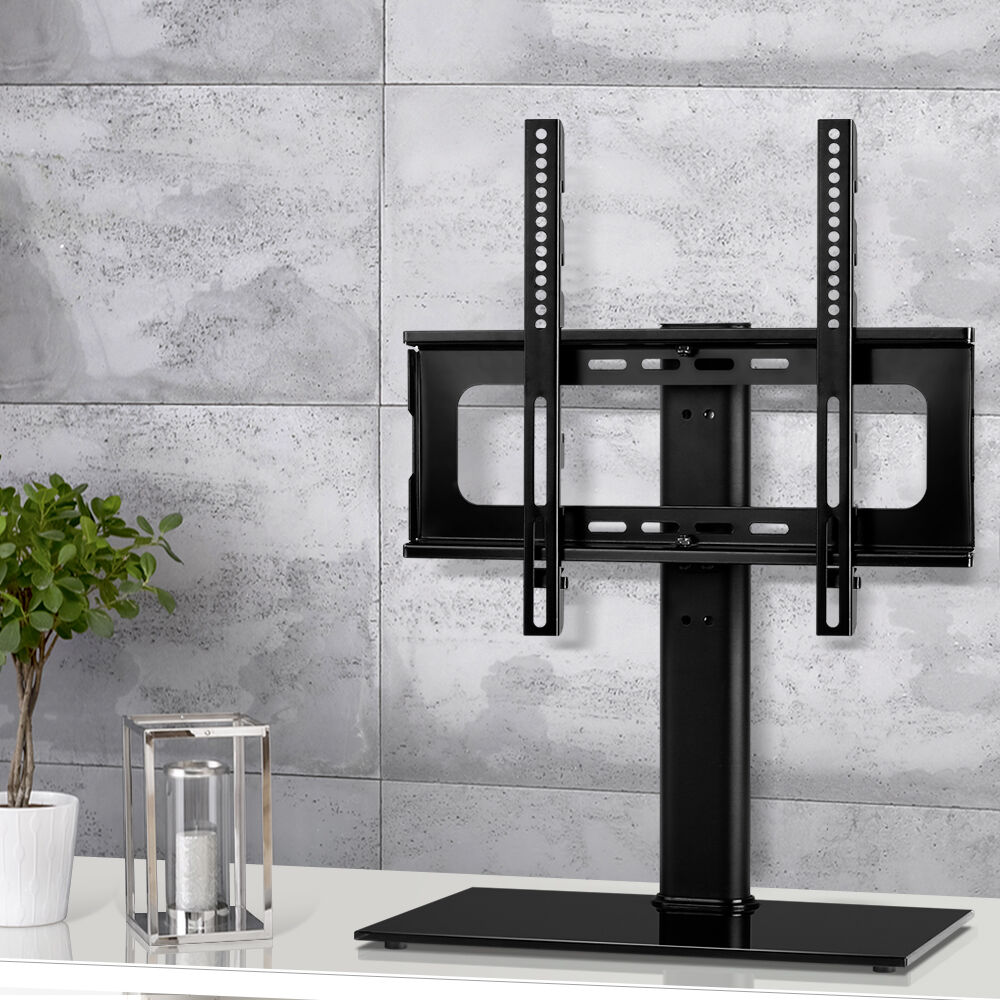 Comprising a strong tempered glass base and a solid metal frame, the Table Top TV Stand is perfect for mounting any TV screen between 32" and 55". It is also compatible with various VESA measurements. The integrated design simply looks stunning, especially with its sleek black finish and easily sits on any flat furniture with minimum fuss. The TV Stand design is also such that you can also run cables behind the TV neatly for a well-concealed look. Better still, TV screen can swivel up to 35 degrees on either side for your preferred viewing spots. Not least, you can safely place a sound bar or mini component system on the tempered glass base to complete a great entertainment centre.