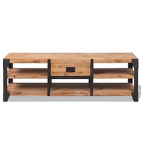 $358.97This wooden TV stand is both stylish and practical. It will give your living room a cool, industrial look. The TV Stand has been expertly crafted from 100% solid acacia wood with a brushed finish and steel, making it durable. It has sufficient storage space to keep your DVD player, game console, remote controls, and other knick-knacks organised and within reach. Assembly is easy.